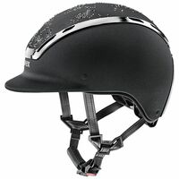 Eine Kaskade applizierter Swarovski®-Kristalle umgeben von einem edlen Chromrahmen ziert das Top dieses eleganten Reithelms. Mehr als 500 Steine glitzern wie Sternenstaub und sind ein echter Blickfang! Darunter garantieren hochwertige Features optimalen Sitz und einen sicheren Schutz in jeder Situation. Dazu gehören zum Beispiel die neuen veganen Ledergurtbänder, die durch einen neu entwickelten Y-Verteiler flexibel verstellt werden können, oder die bewährte Hardshell Technologie. Für Reiterinnen, die ganz genau wissen, worauf es ankommt.