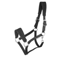 Hochwertiges Halfter mit weich wattierten Nasenriemen und Genickstück aus Alcantara. Die Fleeceeinsätze sind zur zusätzlichen Druckverteilung mit Softpolstereinlagen ausgestattet, um einen optimalen Tragekomfort sicherzustellen. Am Genickstück beidseitig verstellbar.